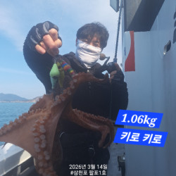 3월8일 팔포1호 원도권 돌문어사냥 다녀왔습니다. ((3월15일 일요일 자리여유 => 지금바로 010.2565.5943 전화주세요)) 키로키~로 올라옵니다 '와~~~우' 오늘의 공동 장원 3분 '모두 모두 축하드립니다' 키로오바 2수포함 '오~~~좋아' 첫~수부터 조용히 마릿수 달려달려 '키로가 아쉽다야' 최대어에 나눔까지 '맘씨도 최~~~고' 최대어 1.87kg 2관왕 '축하 축하' 3월8일 팔포1호 좋은분들과 바다가 내어주는만큼 즐낚하며 마무리합니다. 늘 건강하시고 어복충만 행복하세요. 고생하셨습니다. 내일 인생문어 뜯어로 열심히 달려보겠습니다. 옷 따뜻하게 입고 채비 넉넉하게 준비하시고 어복만땅 충전해서 놀로 오세요. ※ 입금계좌 : 농협 351.1285.5509.63 김진태 ※ 출조시간 => (돌문어) 오전 6시~오후 4시경 (야간 낙지) 오후6시~오전 1시경 물때따라 유동적※ 단체출조시 시간조절 가능합니다.※ 주말에는 예약이